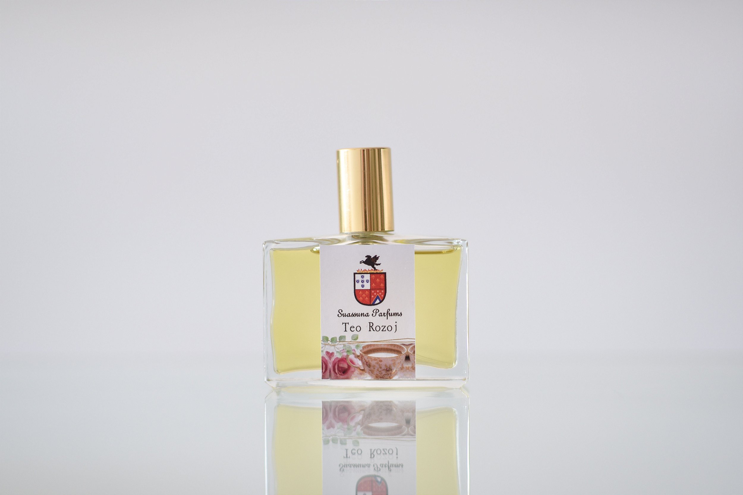 Teo rozoj significa chá de rosas em esperanto. Faz parte da coleção de chás da empresa, onde a concentração do perfume é um pouco menor (eau de toilette).